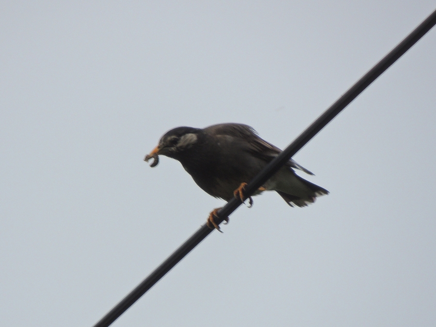 ムクドリは獲物をゲットしてホクホクしてる様子でした。