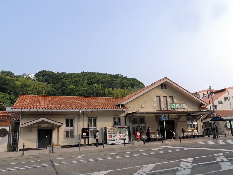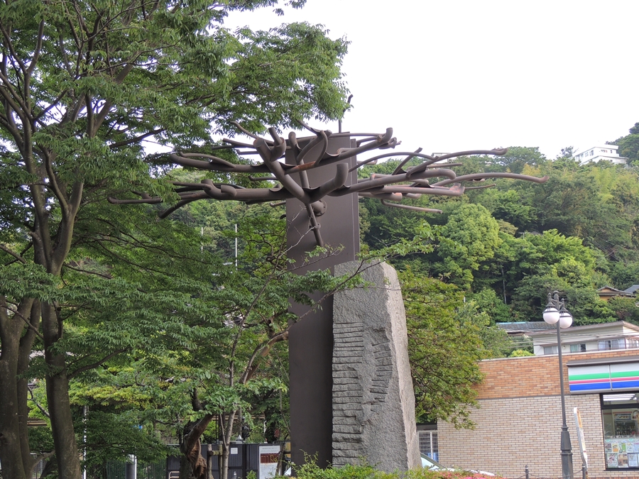 駅舎のすぐ近くにあるオブジェが、なんか止まり木に見える。