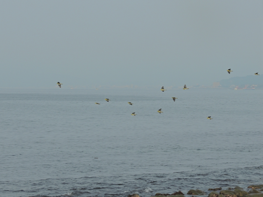 登場を待っている間は、遠くを通り過ぎていく鳥を撮ったり