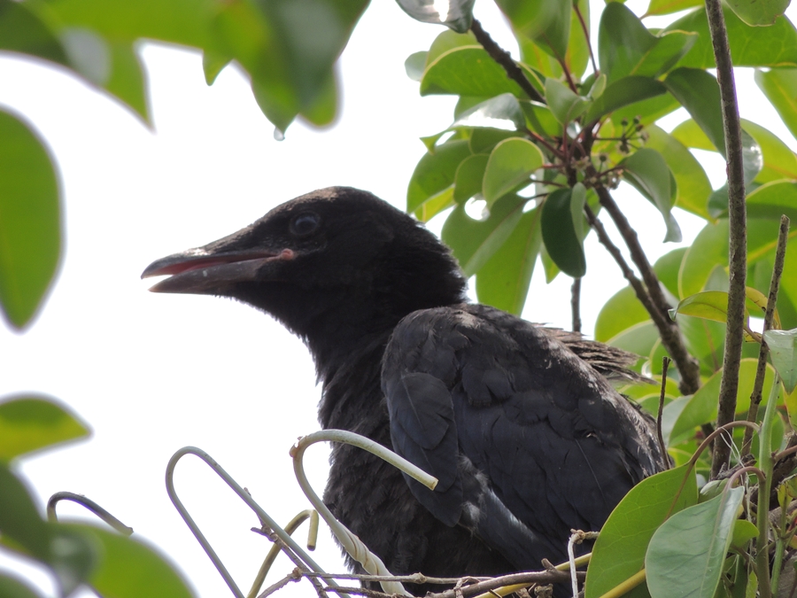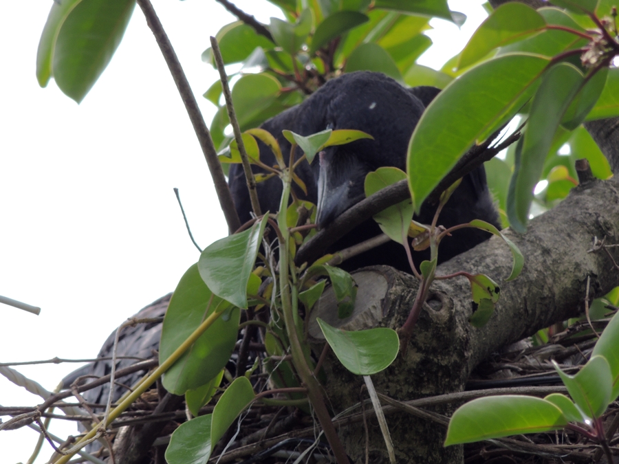 川沿いの並木の一本にカラスの巣を発見。