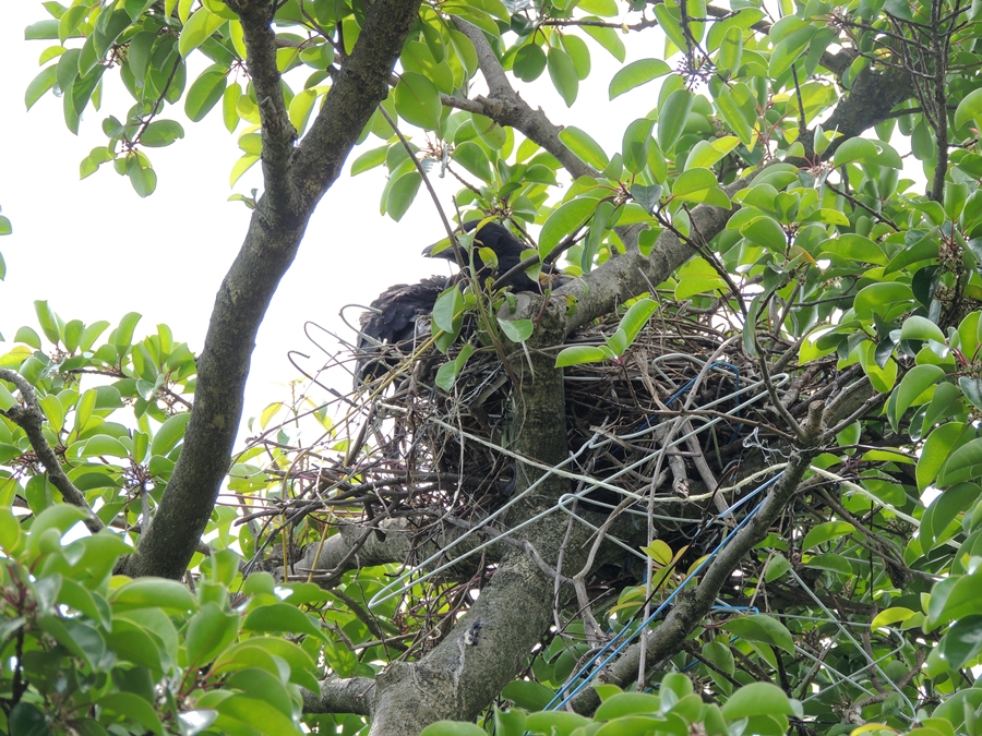巣材に針金のハンガーがふんだんに使われてますね(笑)