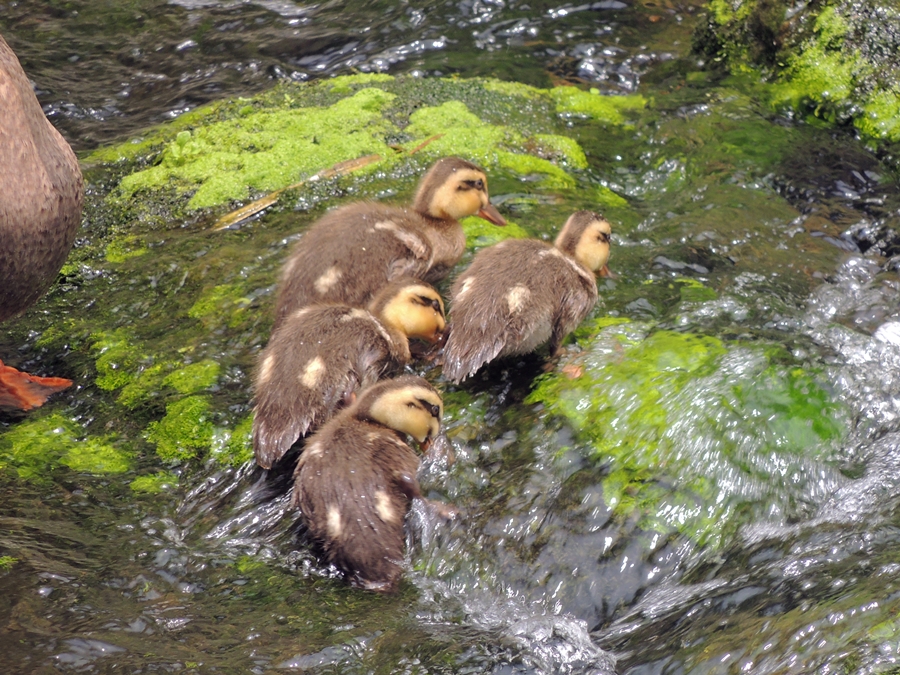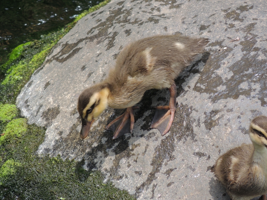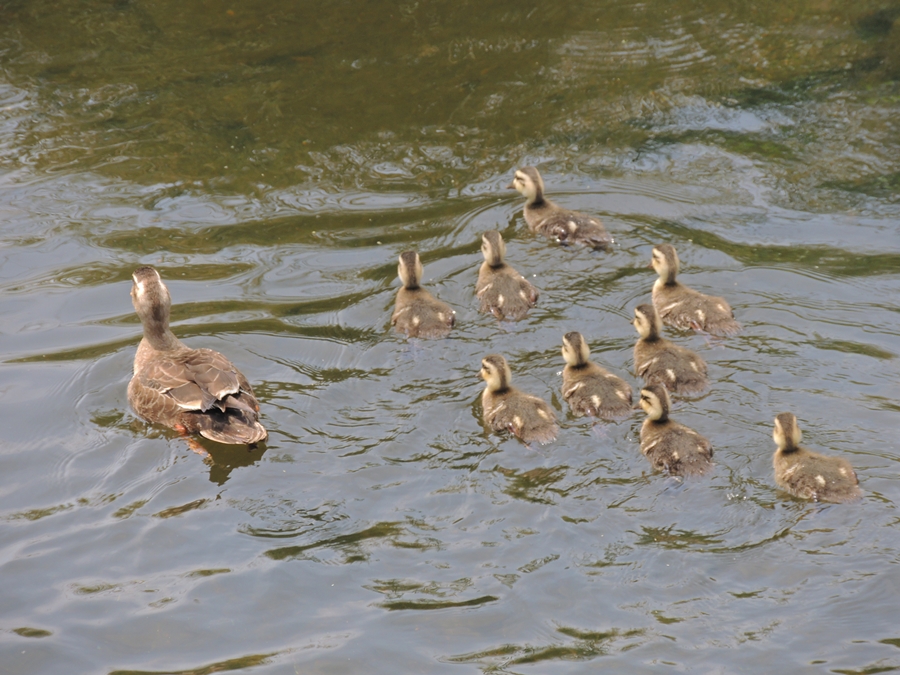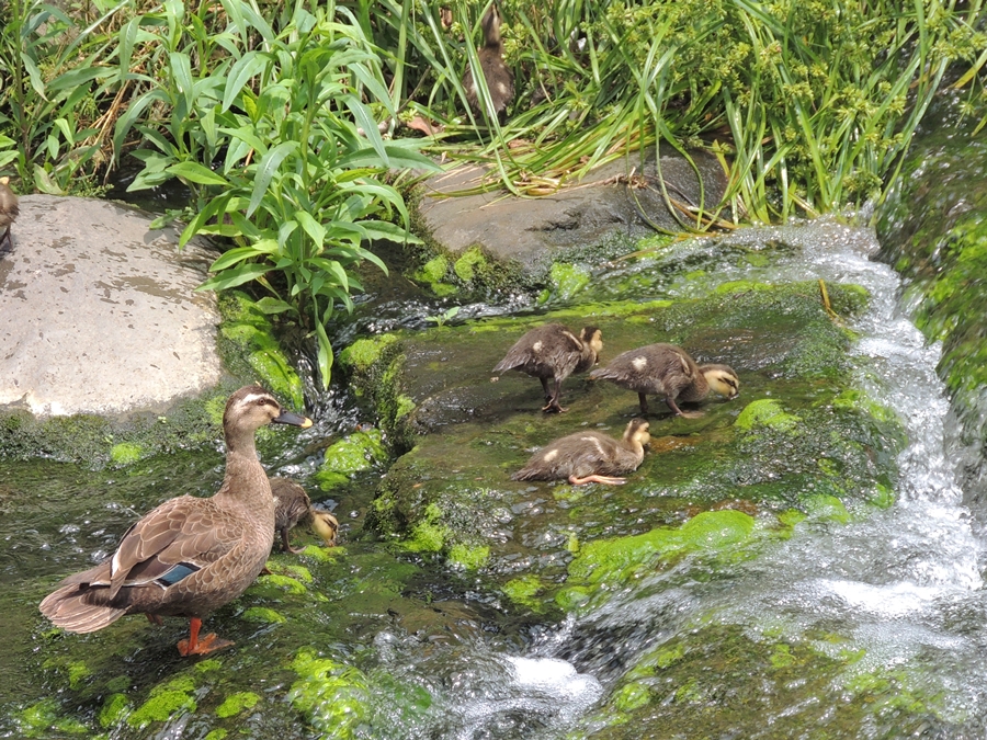 「あっちにカルガモの雛いたの見た?」と