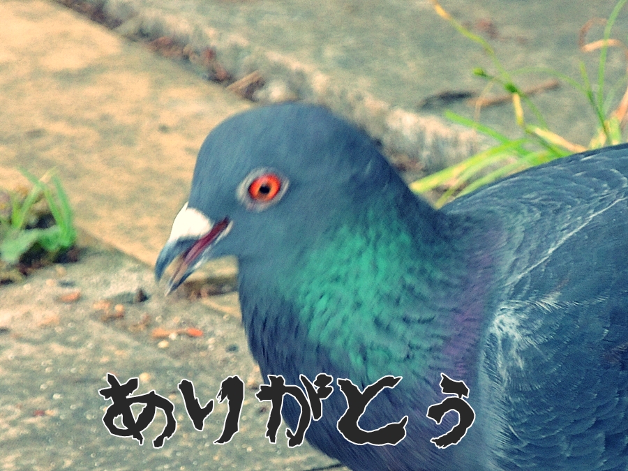 と言わんばかりに鬼の形相でパンくずを食べていたドバトさん。