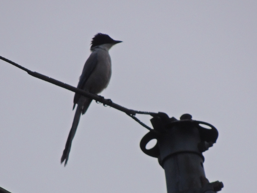 家の前の電線に留まっていたオナガに挨拶して出発!